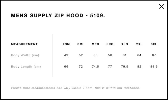 | Garment ½ Chest (cm) | 49.5 | 52 | 54.5 | 57 | 61 | 65 | 70 | 80 |